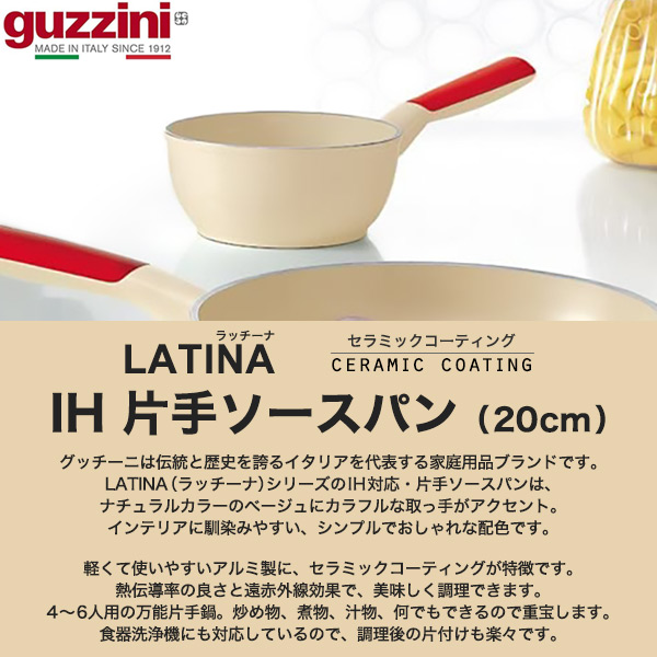 片手ソースパン 20cm IH対応 食洗機対応 鍋 guzzini LATINA 片手鍋 セラミックコーティング 軽量 ミルクパン 調理器具 新生活 台所用品 キッチン用品 4人用 5人用 深め なべ 一人暮らし キッチン雑貨 テーブルウェア グッチーニ スープ 雑炊 うどん ラーメン