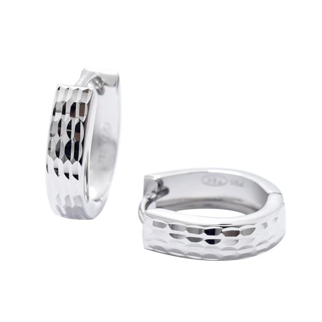 表面にカットが施されたキラキラと輝くシンプルなデザインピアスです。留め金具はワンタッチで留めやすく落ちにくい中折れ開閉式です。
