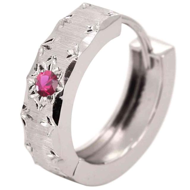 フープピアス シルバー メンズ 片耳用 ルビー ピアス フープ 中折れ式 男性 人気 SV925 大人
