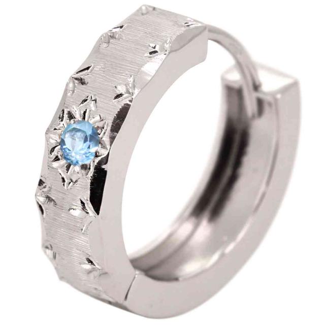 フープピアス シルバー メンズ 片耳用 ブルートパーズ ピアス フープ 中折れ式 男性 人気 SV925 大人