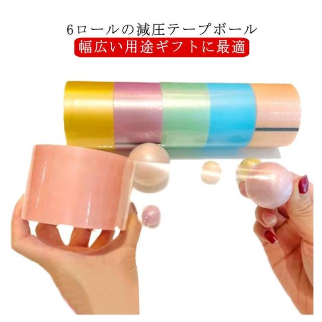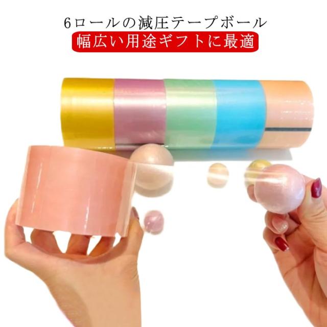テープボール用テープ テープボール 幅4.8cm 6ロール スティッキーボール スティッキー球 カラフル 指遊び スティッキーボールテープ 減圧おもちゃ 癒し 玩具 子供 暇つぶし 大人 ストレス発散 リラックス 玩具 DIY 減圧ボールテープ
