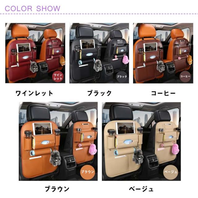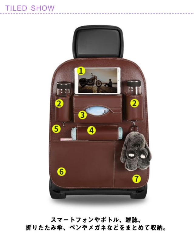 | 車内限りあるの空間を活用頂ける! 高品質のPUレザーを採用しております。 取り付けはとても簡単です。 スマートフォンやボトル、雑誌、折りたたみ傘、ペンやメガネなどをまとめて収納。 散らかりがちな車内がスッキリ片付きます。 | |