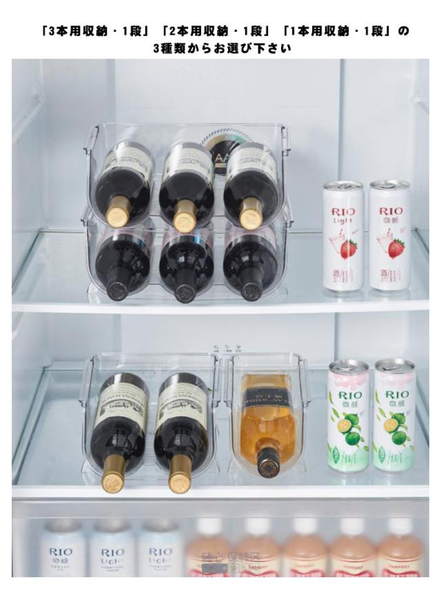| ワインボトル、シャンパン、ビール瓶、缶、ペットボトルなどの収納に最適なボトルラック。冷蔵庫収納可◎ 【重ね置き可能】1段につき1-3本収納でき、上の段にも乗せていけば、更に1-3本ずつカンタンに増やしていくことが可能です。 冷蔵庫での使用も可能なので、使い勝手も抜群です。 シンプルながらもスマートなデザインは、さまざまなシーンになじみます。 「3本用収納・1段」「2本用収納・1段」「1本用収納・1段」の3種類からお選び下さい。 | |
