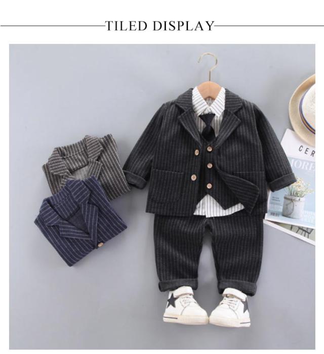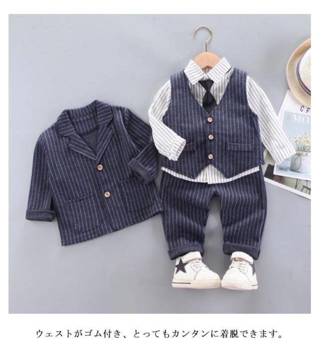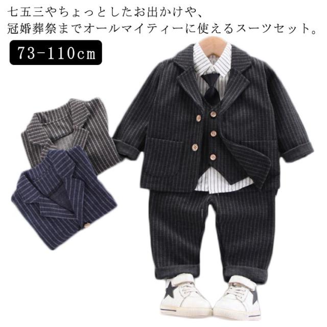 4点セット スーツ 赤ちゃん 七五三 保育園 入園式 子供 キッズ こども ネクタイ付き スーツ ベビー 男の子 結婚式 おしゃれ ジャケット ズボン シャツ ベスト 110 73 80 90 100 フォーマル
