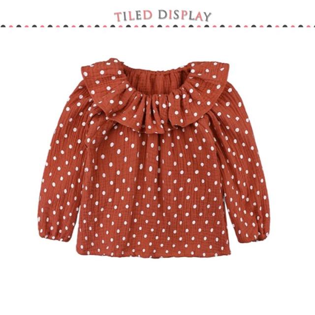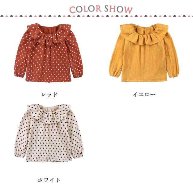 ラッフルカラー 長袖 90cm ウィンドカフス プルオーバー スモックブラウス トップス シンプル ドット柄 ソリッドカラー 無地 可愛い 単色 子供用 おしゃれ 水玉模様 かわいい 女の子 女児 子供服 子ども服 こども服 80cm キッズ