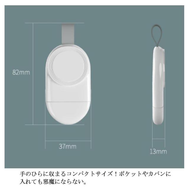 | ケーブル不要!Apple Watch用USB式マグネット充電器! マグネットが内蔵され、AppleWatchと引き合い振動などでズレることなく、安定して充電することができます。 USB式なので、何処でも充電可能!ケーブル不要!PC、モバイルバッテリーも充電可能! 接続されたデバイスを自動的に検知し、最適な電流を流します。 手のひらに収まるコンパクトサイズ!ポケットやカバンに入れても邪魔にならない。 ストラップ可能、携帯便利、紛失防止!キーホルダーにも付けられます。 過熱や過充電を防止する目的でトリクル充電を採用しています。 | |