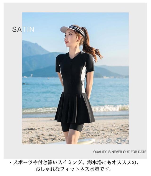 フィットネス水着 レディース 上下セット 一体型 オールインワン ショートパンツ 半袖ワンピース ノンワイヤー パッド付き ストレッチ 露出控えめ ママ水着 体型カバー 女性用 おしゃれ かわいい 全2色