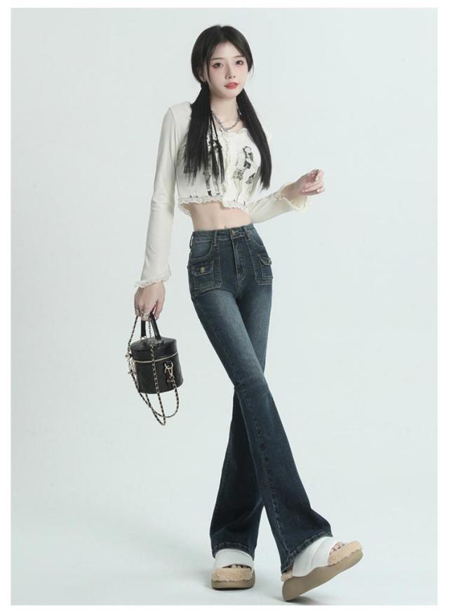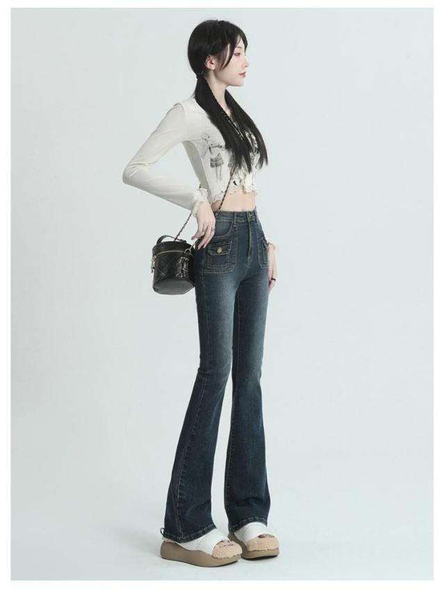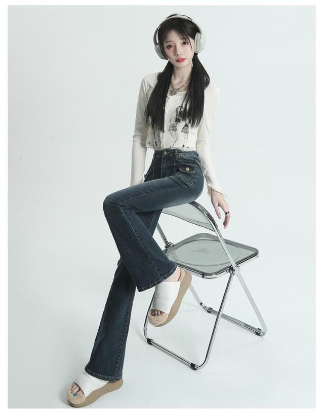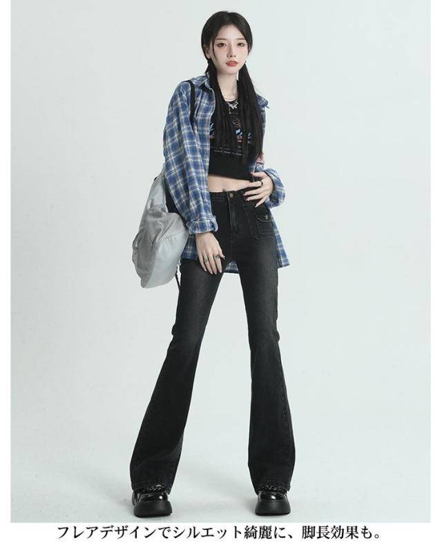 | 細身シルエットでスッキリ穿きこなせるフレアデニムパンツ。 こなれ感を演出してくれるウォッシュ加工。 フレアデザインでシルエット綺麗に、脚長効果も。 伸縮性抜群!着回し力抜群でコーデの幅が広がるお洒落デニム! ハイウエストでスタイルアップ、様々なトップスと相性をよく着回しできます。 | |