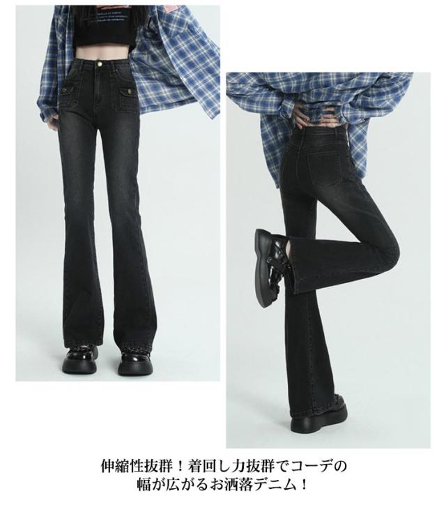 デニムパンツ レディース フレアパンツ 春物 ジーパン カジュアル ベルボトム 大きいサイズ ボトムス シンプル きれいめ 黒 春 秋 着回し 普段着 ストリート ストレッチ ブーツカット ジーンズ 送料無料