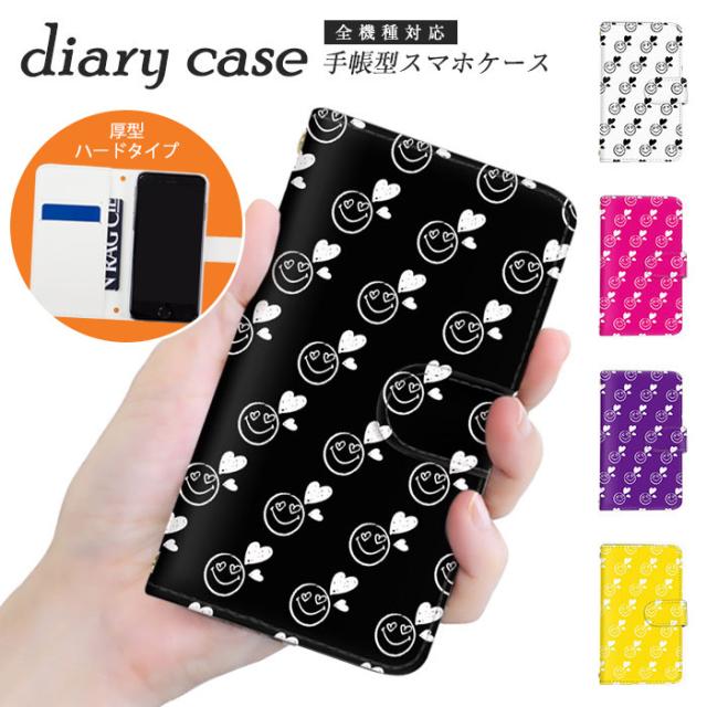 スマホケース 手帳型 全機種対応 ハート aquos ソフトバンク スマホ sense5G Reno A ケース 携帯ケース ショルダー SHV41 808SH SOV34 SOG05 SH-53A sh-rm11 lay-l09 par-lx9 手書き風 smaile