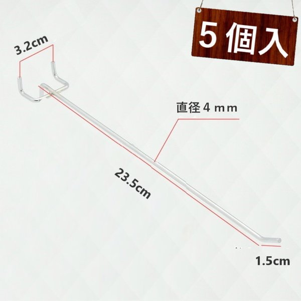 新品 5個入り【穴ピッチ30mm用】 有孔ボード T型 25cm パンチングボード フック 太さ直径3.5mm