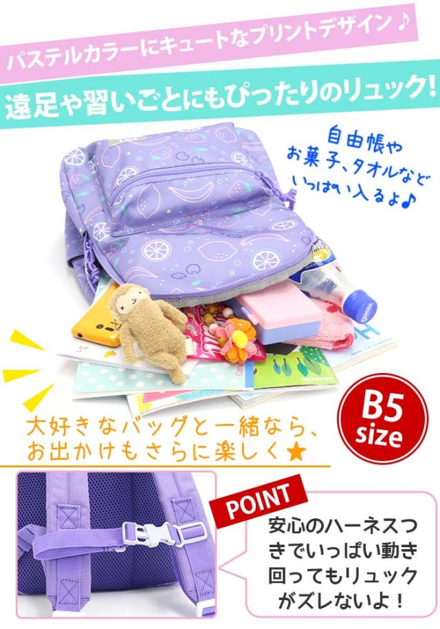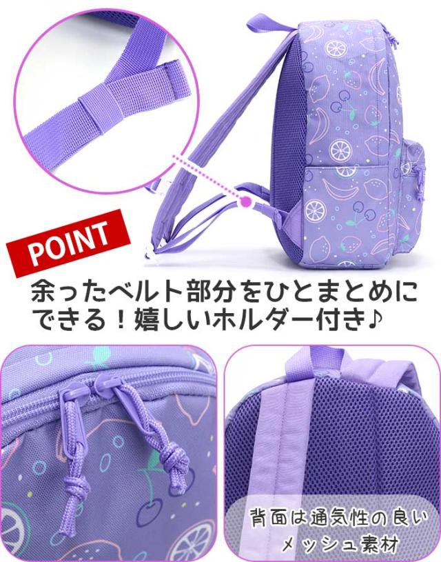 | この商品について | かわいい色使いと女の子が大好きな柄がいっぱい詰まったキッズリュックサック★ B5サイズOK!たっぷり入るので通園・通学、おでかけ、遠足や習い事にもぴったり♪ 安心のハーネスつきでいっぱい動き回ってもリュックがズレません! フロントのファスナーポケットはハンカチやパスケースなどすぐ取り出したいものを入れるのにぴったり。さらにメインルームにもポケットつきで小物の収納に◎ ショルダーベルトはしなやかで背負いやすく、背面には通気性の良いメッシュ素材を使用しているので快適♪ 余ったショルダーベルトをひとまとめに出来るホルダー付きで、引っかけたり踏んづけたりする心配もありません! ブランドロゴ入りの内生地もポイント。 【幼児〜低学年におすすめ♪】 |