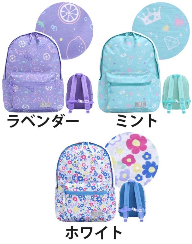 メイ キッズ リュック MEI 女の子 リュックサック キッズデイバッグ バックパック デイパック かわいい 女子 女児 子供 子ども 通園 幼稚園 保育所 小学生 低学年 未就学児 入園 入学 遠足 おしゃれ 総柄 プレゼント B5 ME3011LV-7 ME3012MT-5 ME3013WH-0