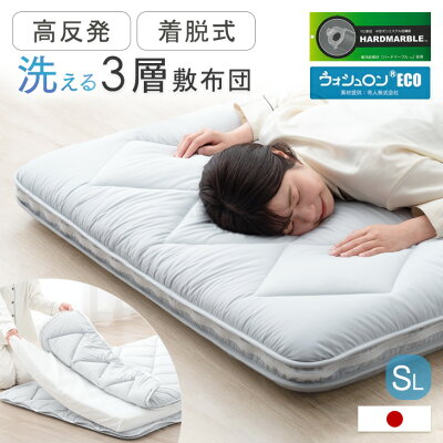 敷き布団 シングル 軽量 高反発 日本製 軽量 厚み7〜8cm 固綿 防ダニ 抗菌 防臭吸汗 速乾 東洋紡 ハードマーブル 三層敷布団 極厚 国産 硬め 敷ふとん マットレス不要 ベッドマット 布団 来客用 敷布団