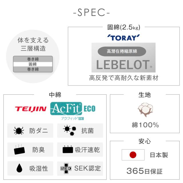 中綿:帝人アクフィットECO(ポリエステル綿)100% (約2.0kg)