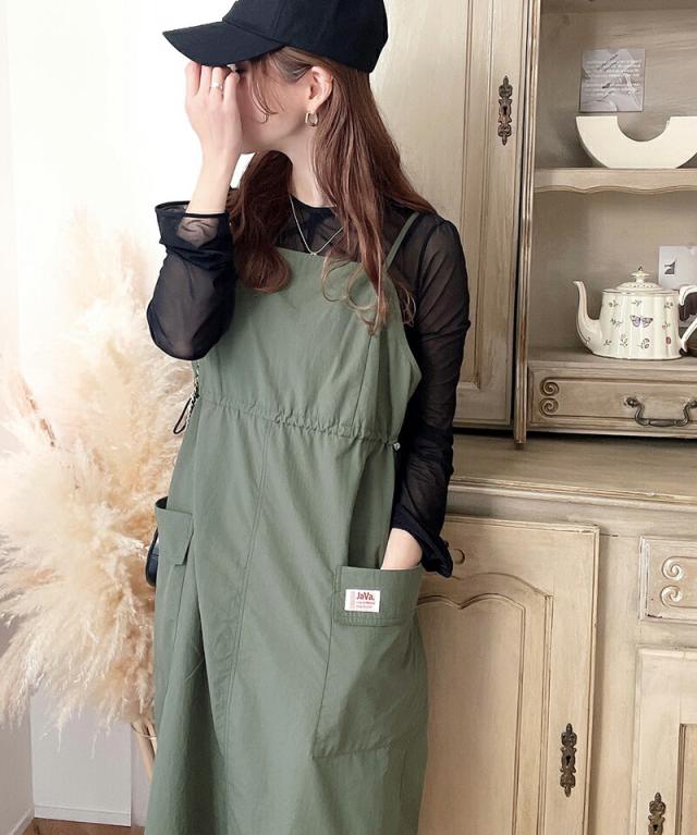 春新作 クラシカルエルフ ワンピース レディース《javaジャバ コラボ》 トップス ジャンパースカート ナイロン素材 ミリタリー ジャンスカ サイド ドロスト ポケット バックスリット レイヤード コーデ 大きいサイズ 2026ss jv1010199