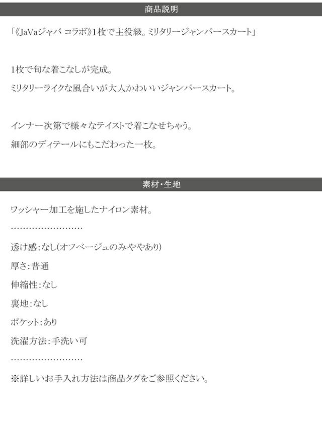 ★《JaVaジャバ コラボ》1枚で主役級。ミリタリージャンパースカート★