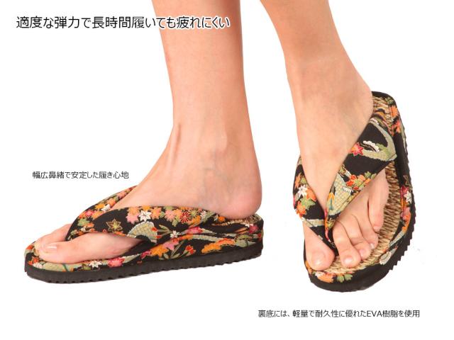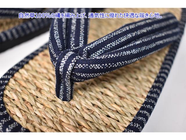 自然草をひも状の縄に仕上げ、縄を編み上げた通気性に優れた快適な履き心地。