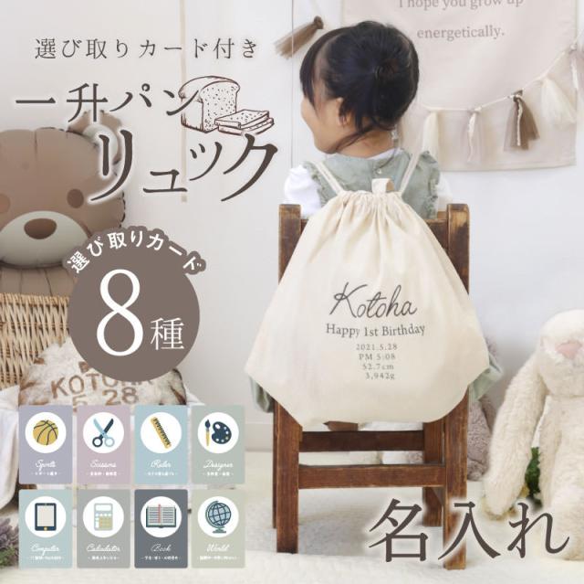 リュック ナップサック 名入れ 選び取りカード付き一升パンリュック ベビーリュック 一升米 一升パン 一升餅 バッグ バック 選び取りカード 選び取り 無漂白 安心 一歳 一才 1歳 誕生日 出産祝い イベント 記念日