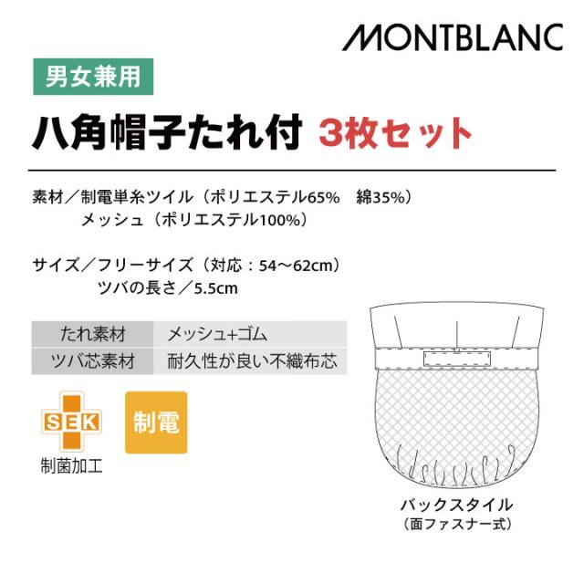 3枚セット 住商モンブラン 衛生帽子 八角帽子 たれ付 食品工場 白衣 調理白衣 食品白衣 衛生白衣 衛生衣 衛生管理 食品加工 食品製造 厨房 フードユニフォーム キャップ 制服 ネコポス sm-9-809-s3