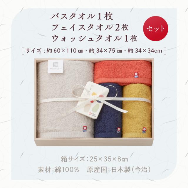 今治タオル バスタオル1枚・フェイスタオル2枚・ウォッシュタオル1枚 古色ゆかりいろ 出産祝い 結婚祝い 挨拶 お礼 お祝い 内祝い