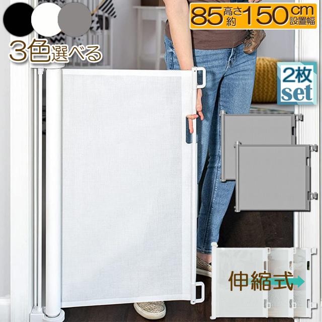 ペットゲート ロール 2枚セット 伸縮 巻き取り 取付幅150cmまで バリアフリー 段差なし ロック機能 ベビーゲート 赤ちゃん ペット 犬 台所 廊下 階段 最大幅150cm 柵 階段上 玄関 廊下