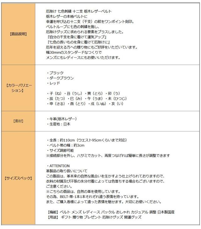厄除け 七色刺繍 十二支 栃木レザーベルト