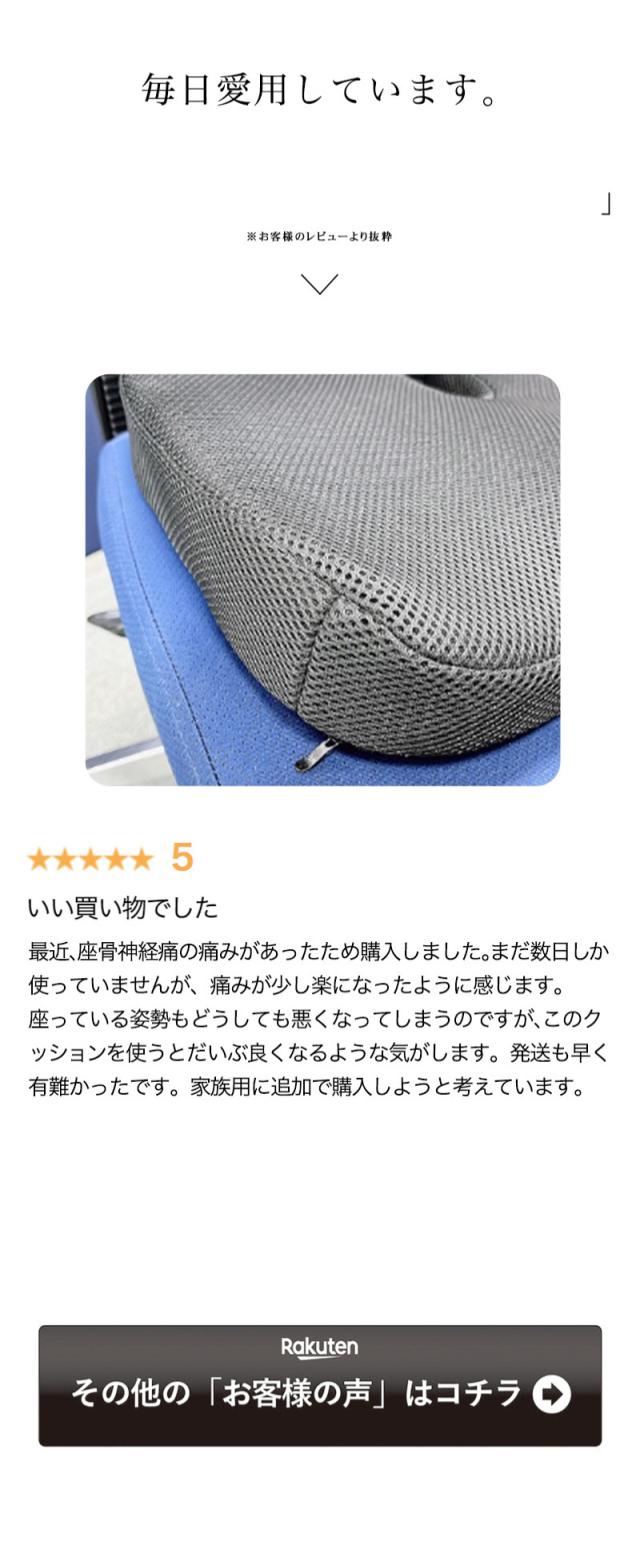 - 沢山似た商品があるので、迷いましたがテレビ等で紹介されてたようなので、こちらに決めました。 坐骨神経痛なので、改善するか期待してます。 座った感じはしっくりきて良い感触です。 あと、説明書が無かったの...