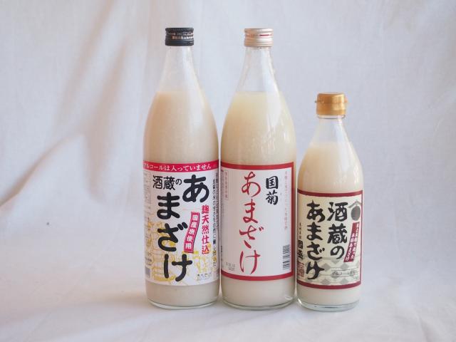 セレクト甘酒3本セット(ぶんごあまざけ(大分県)900ml 国菊(福岡県)あまざけ900ml 国盛酒蔵のあまざけ500ml)