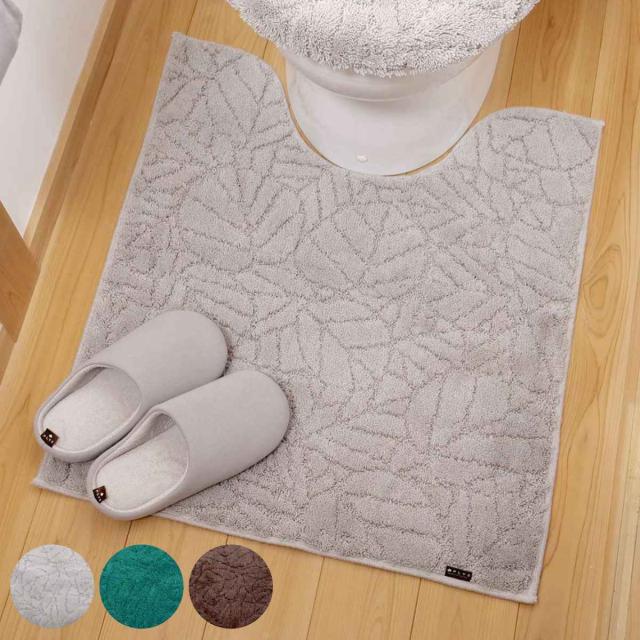 トイレマット ロング プリスベイスウィル 75×63cm ( トイレ マット 滑り止め 足元マット ラグ 消臭 トイレグッズ トイレタリー すべり止め リーフ柄 洗濯OK シンプル )