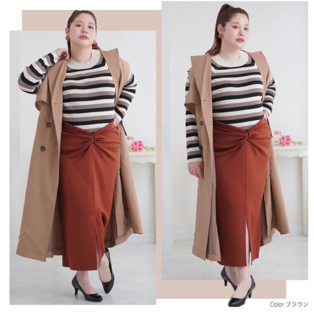 新作 大きいサイズ レディース スカート | 【ラファモプロデュース】 【なまちゃん】 イージーケア ウエストツイストデザイン タイトスカート lafarfa シワになりにくい ウォッシャブル お家で洗える 洗濯機洗い [490035] LL 3L 4L 5L 6L