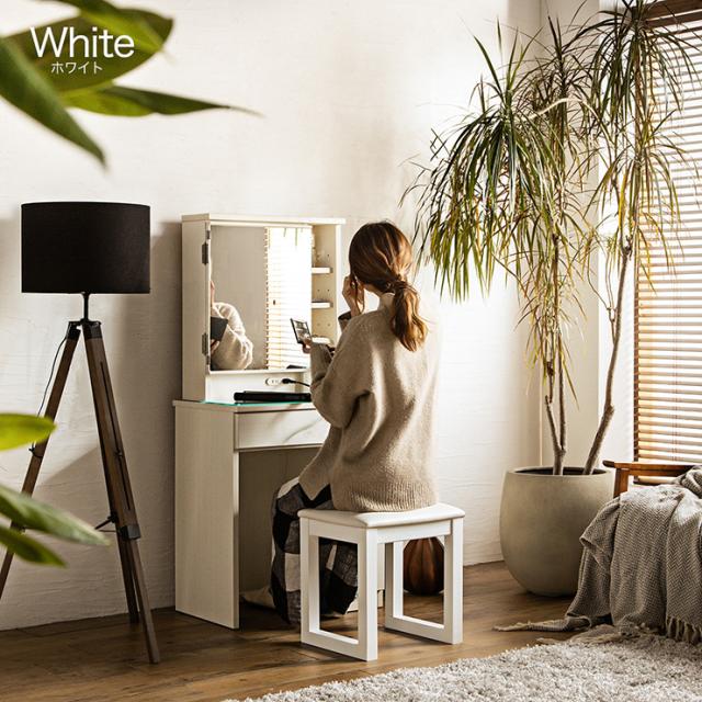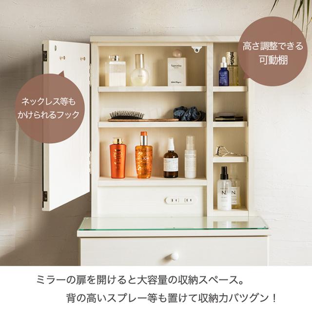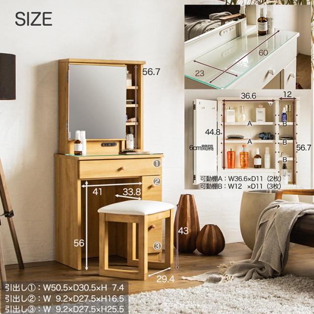 【コンセント付き/可動棚】1面ドレッサー 幅60cm PANELA2(パネラ2) 2色対応 鏡 ミラー 木製ドレッサー デスク テーブル コンパクト メイク台 化粧台 鏡台 収納 コスメ シンプル 可愛い おしゃれ
