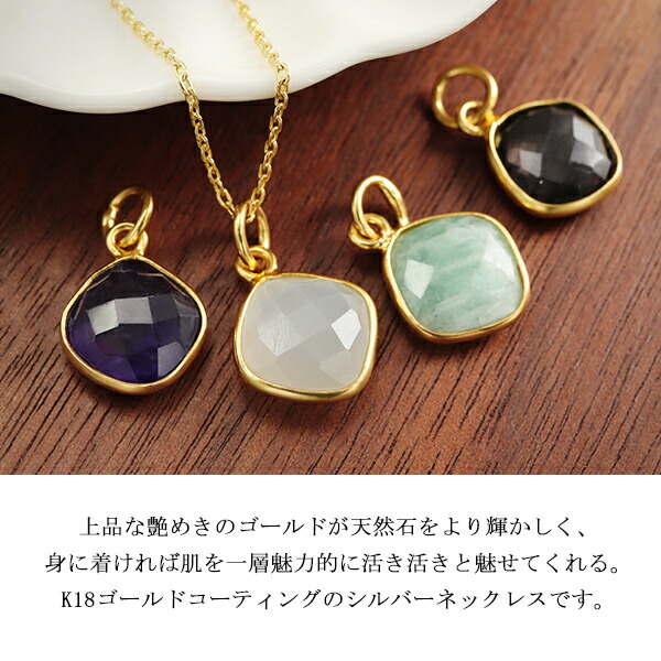 (K18 18K 18金 18金コーティング ゴールドコーティング ゴールドフィルド K18GF K18GP 天然石 パワーストーン アクセサリー ジュエリー 天然石ネックレス パワーストーンネックレス 天然石ペンダント レディースアクセ レディースアクセサリー レディースネックレス 女性用 四角 菱形 ひし形 ダイヤ型 カット 覆輪留め 小ぶり 小さめ さり気ない きらきら 綺麗 清楚 おしゃれ アメシスト パープル グリーン ミントグリーン ブラウン ホワイト 紫 緑 茶 白 小ぶり 小さめ 一粒ネックレス)