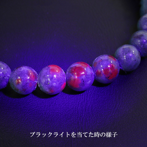 ルビーはブラックライトを当てることで、発光する様子をご覧頂けます。