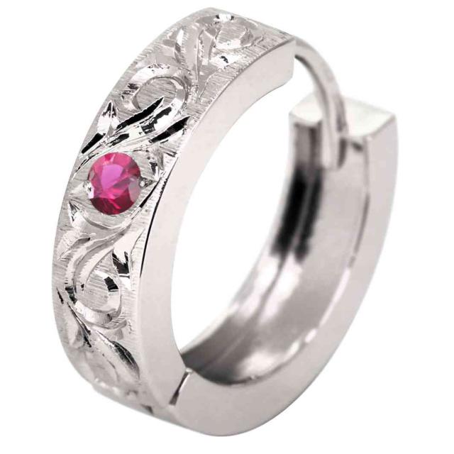 7月誕生石ルビーを使用したシルバー製の、メンズフープピアスです。