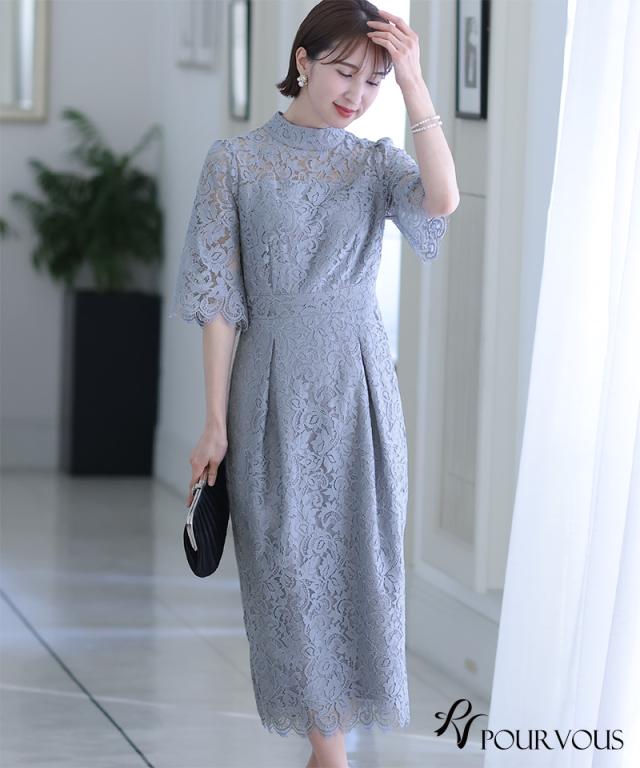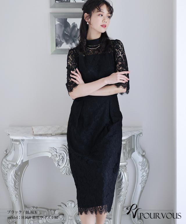 タイトなシルエットが女性らしい総レースワンピースです。