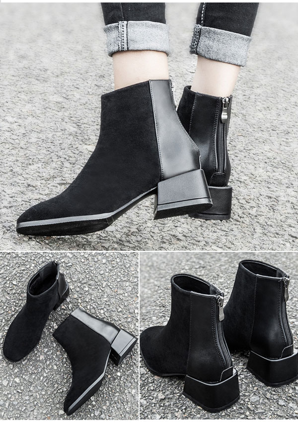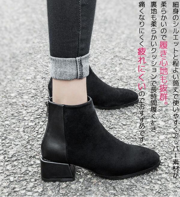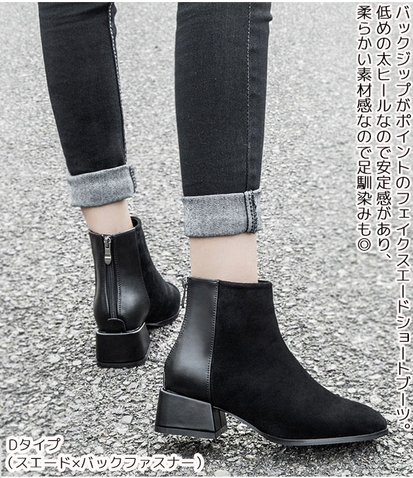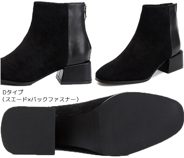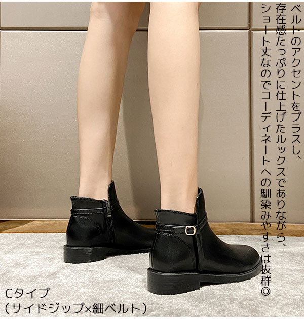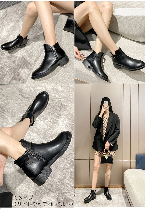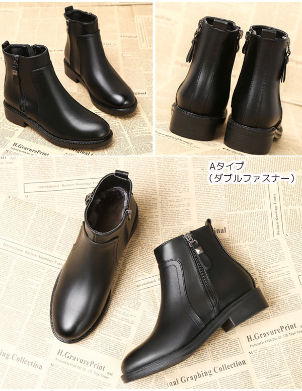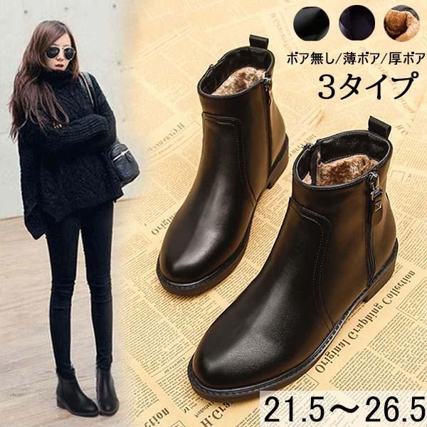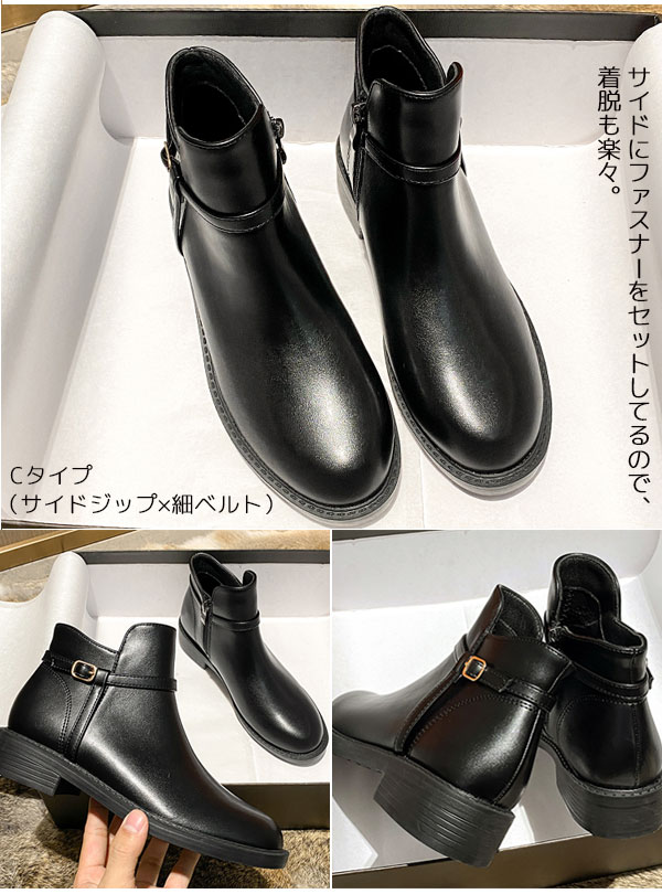 ショート ブーツ レディース 大きいサイズ ショートブーツ サイドジップ ローヒール 歩きやすい 痛くない 脚長 防寒 秋冬 ボア PU ブラック 黒 通勤 21.5 22.0 22.5 23.0 23.5 24.0 24.5 25 25.5 26.0 26.5 ei123t2t2m5