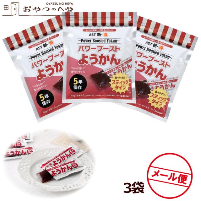 パワーブースト ようかん 3袋 1袋当たり270g(45g×6本) メール便(代引き不可) 災害 スポーツ 栄養補給 非常食 保存食 長期保存