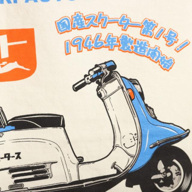 昭和のスクーターの名作をレトロなバイク専門店風にデザイン。