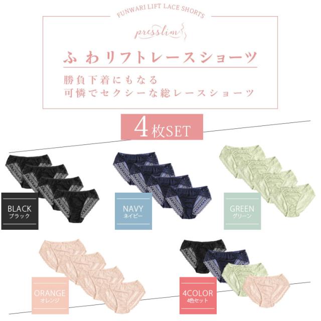| 商品名 | 【4枚セット】プレスリム ふわリフトレースショーツ PRESSLIM FUNWARI LIFT LACE SHORTS |