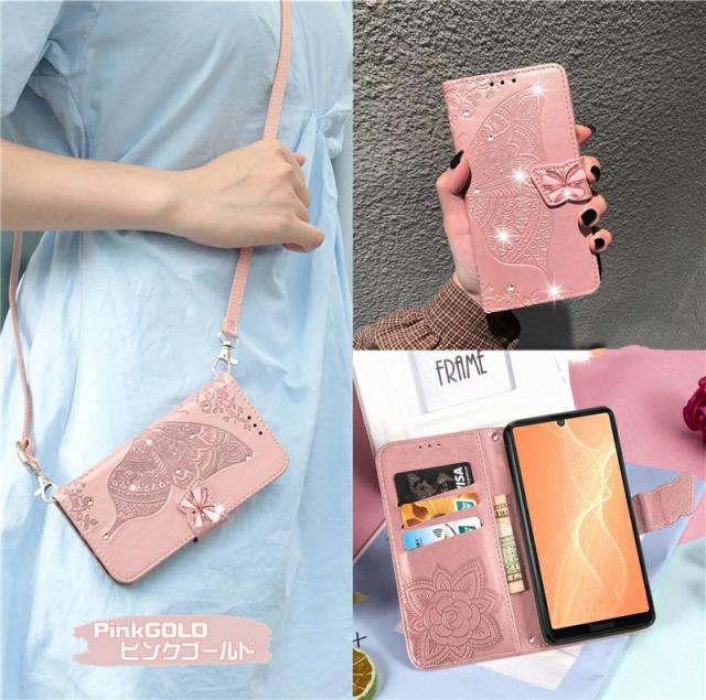 basio4 ケース ショルダー basio4 kyv47 手帳型 basio4 ケース 手帳型 basio4 kyv47 スマホケース kyv47 ケース ショルダー ストラップ 肩掛け蝶々柄 kyv47手帳型ケース basio kyv47 ケース ショルダー ストラップ付き 耐衝撃 大人 女子 おしゃれ かわいい