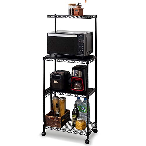 アイリスオーヤマ カラーラック メタルラック レンジ台 4段 キャスター付き ブラック 防サビ加工 幅55*奥行35*高さ139cm ポール径19mm キッチンラック スチールラック サビに強い CMR-55134