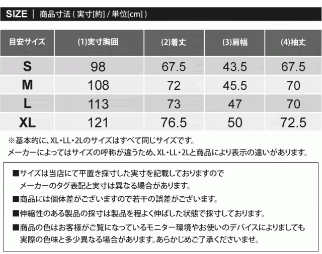 ※基本的に、XL・LL・2Lのサイズはすべて同じサイズです。