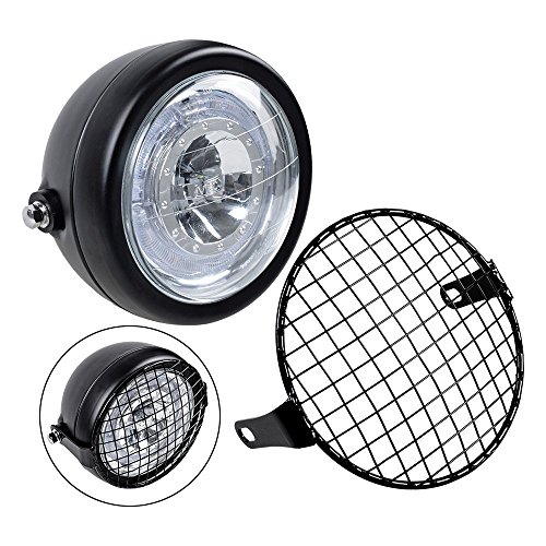 TASWKハーレーダビッドソン オートバイ Cree LEDヘッドライト*メタルグリルカバーメッシュ6.5インチレトロ