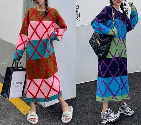 ☆インパクトありの派手カワの派手柄デザインがオシャレなニット生地ワンピース