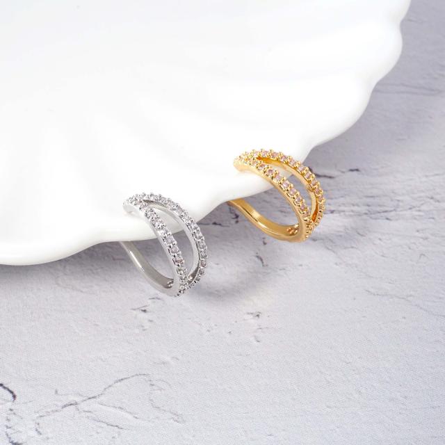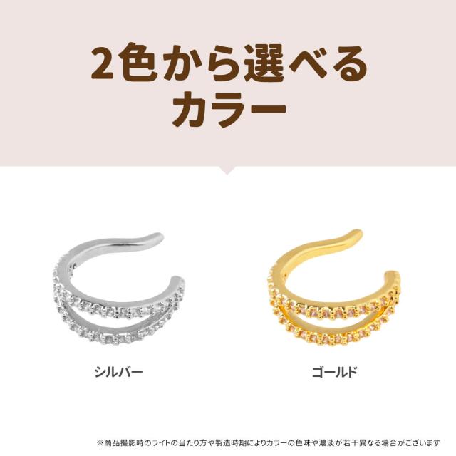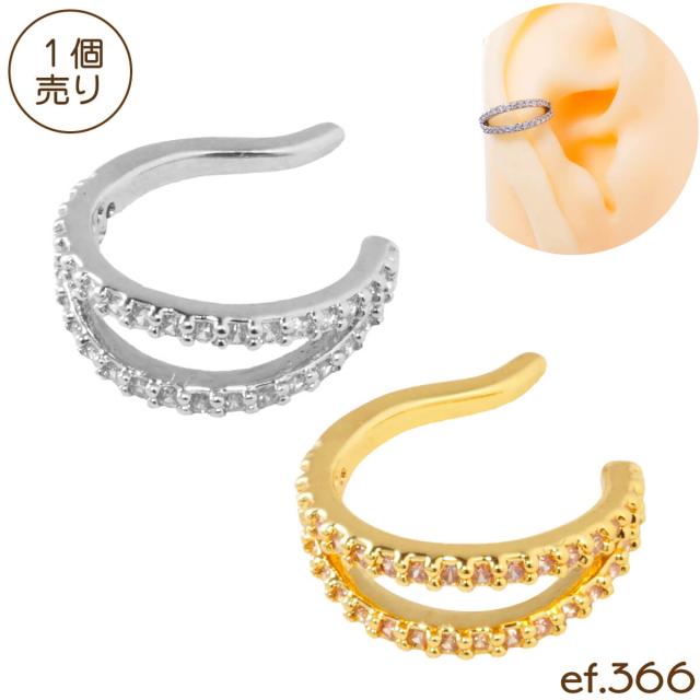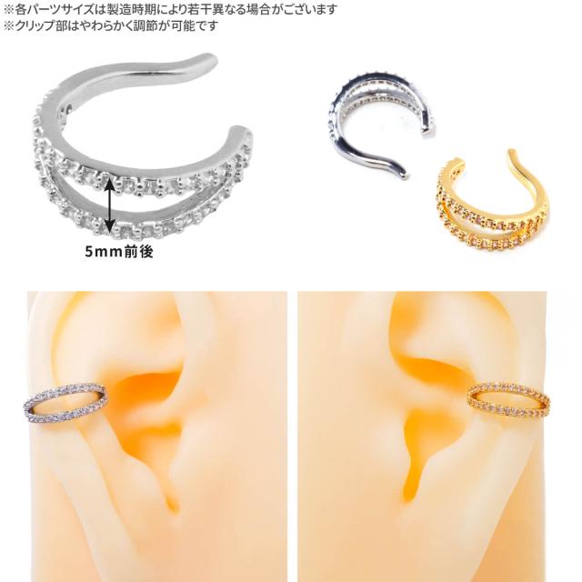 [ef.366] 2連 リング パヴェ イヤーカフ 合金 ジルコニア ジュエル シルバー ゴールド イヤーカフス イヤリング ビジュー ダブル ライン