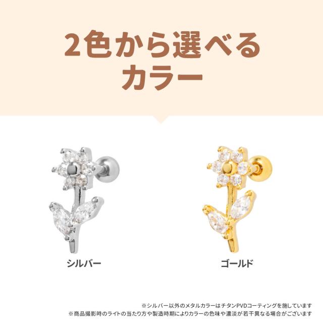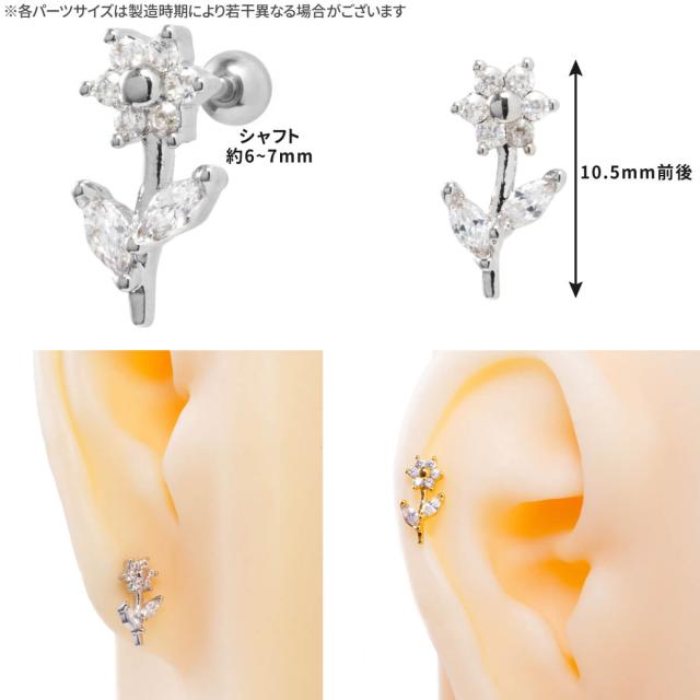 フラワー 一輪 モチーフ ジュエル ストレートバーベル 14G 16G 18G 20G ステンレス ヘリックス 軟骨 ボディピアス 花 葉 リーフ 植物