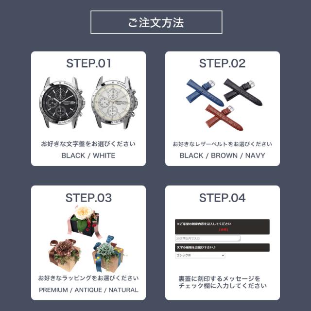 【世界にひとつの オーダーメイド ギフト】セイコー 腕時計 SEIKO 時計 セイコー時計 メンズ 男性 向け 恋人 彼氏 夫 父 父親 お父さん 誕生日 記念日 プレゼント 人気 ブランド 名入れ 刻印 メッセージ シンプル ビジネス 仕事 革ベルト レザー メタル ベルト クロノグラフ