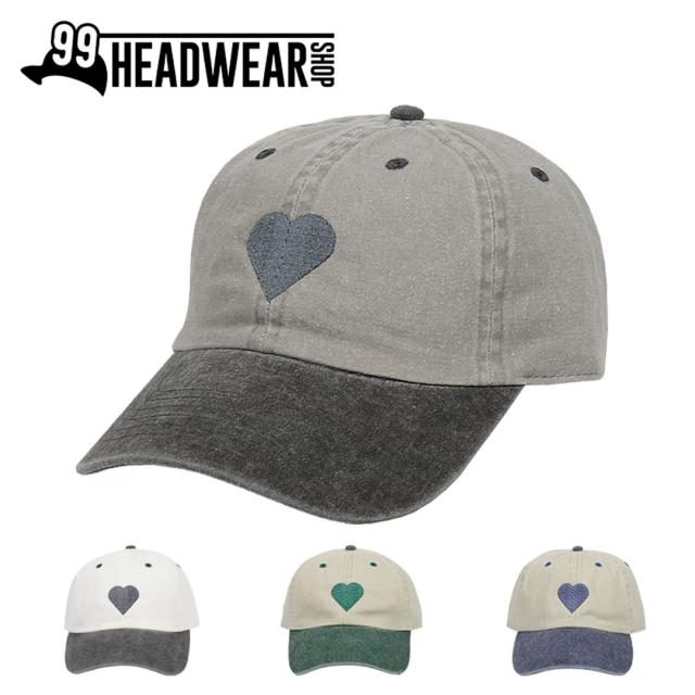 ローキャップ メンズ レディース ユニセックス 帽子 キャップ ハート 刺繍 ツートンカラー ピグメントダイ 顔料染め かわいい 99HeadwearShop