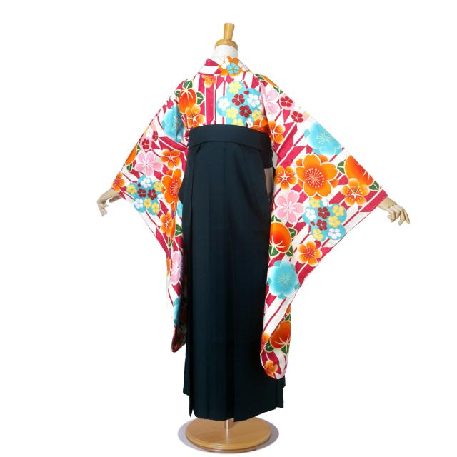小町kids ブランド ジュニア 着物 袴 フルセット レンタル 【袴Sサイズ】【十三参り 卒業式 貸衣装 晴れ着 小学生】水色地 矢絣 橘 桜 黒袴